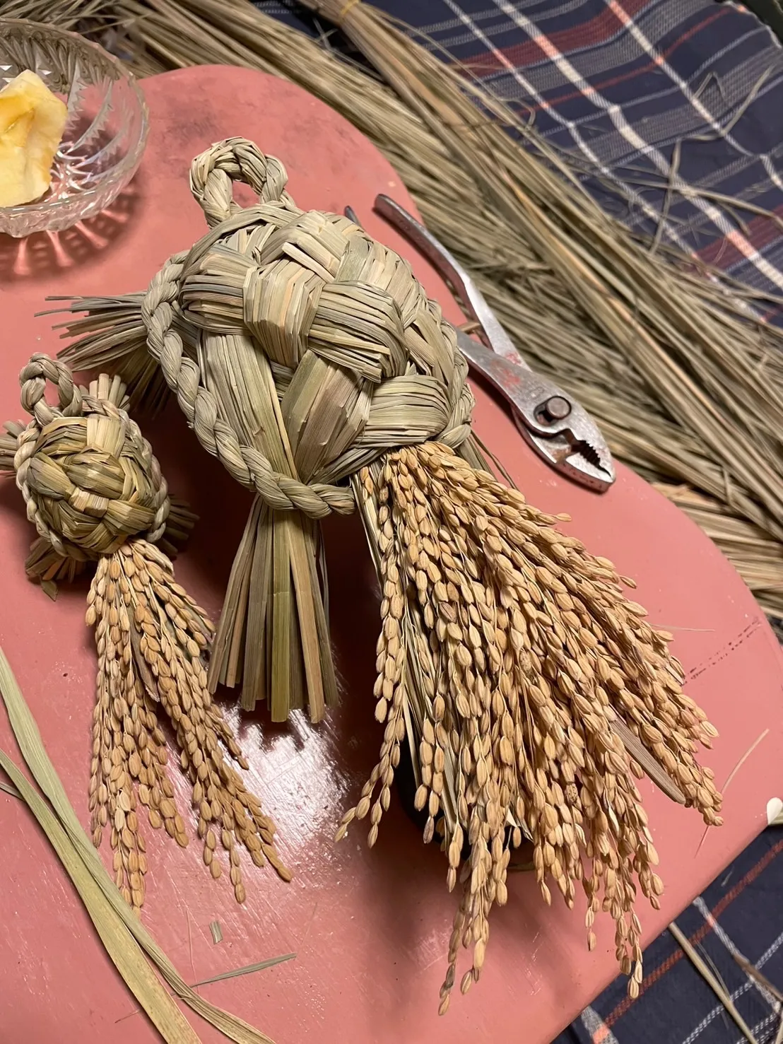 自然に自生した力強い真菰を丁寧に採取し、縁起の良い“親子亀”に仕立てた特別な飾りです。