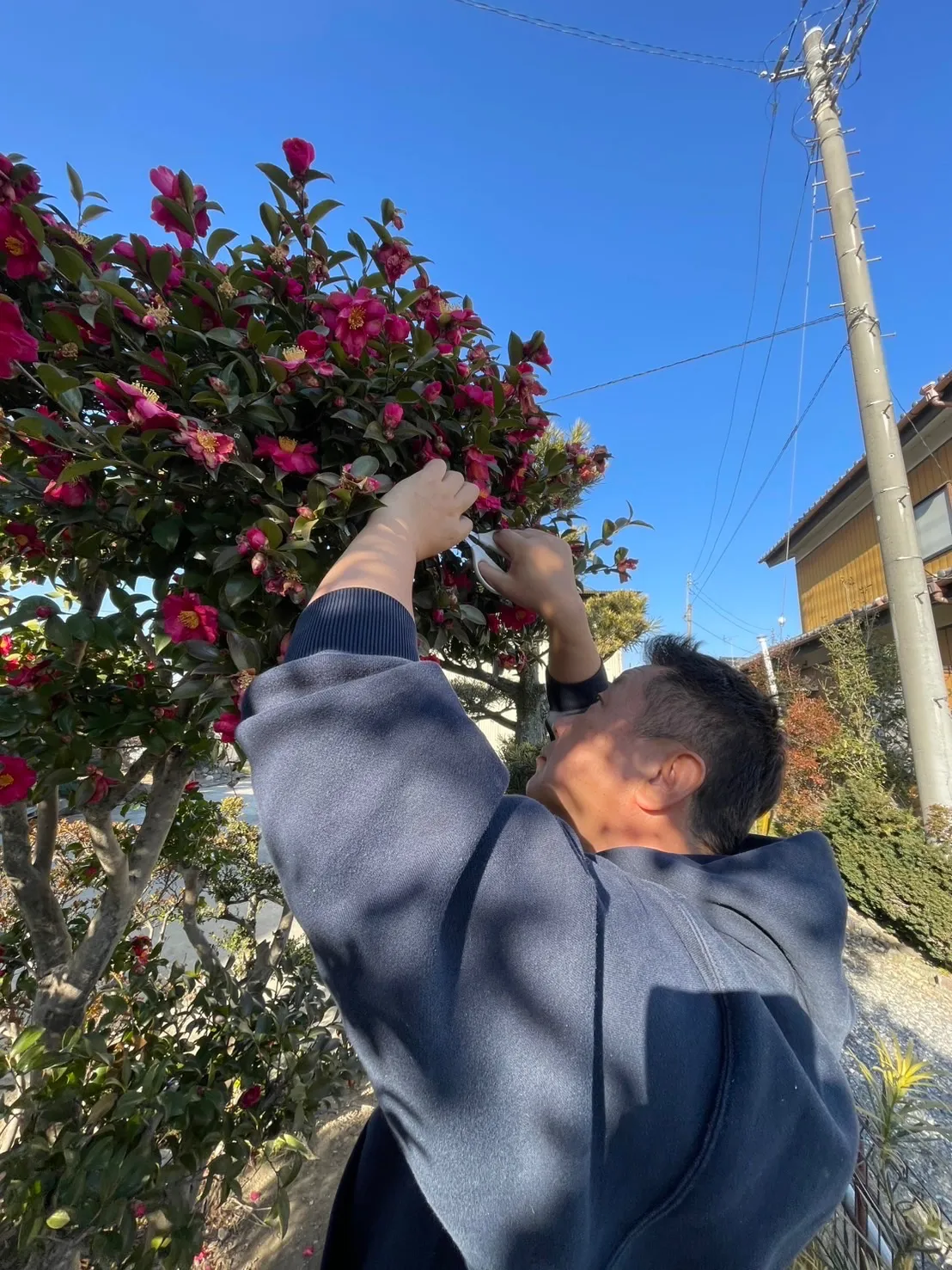 一輪一輪、状態の良い椿を選び、丁寧に採取。